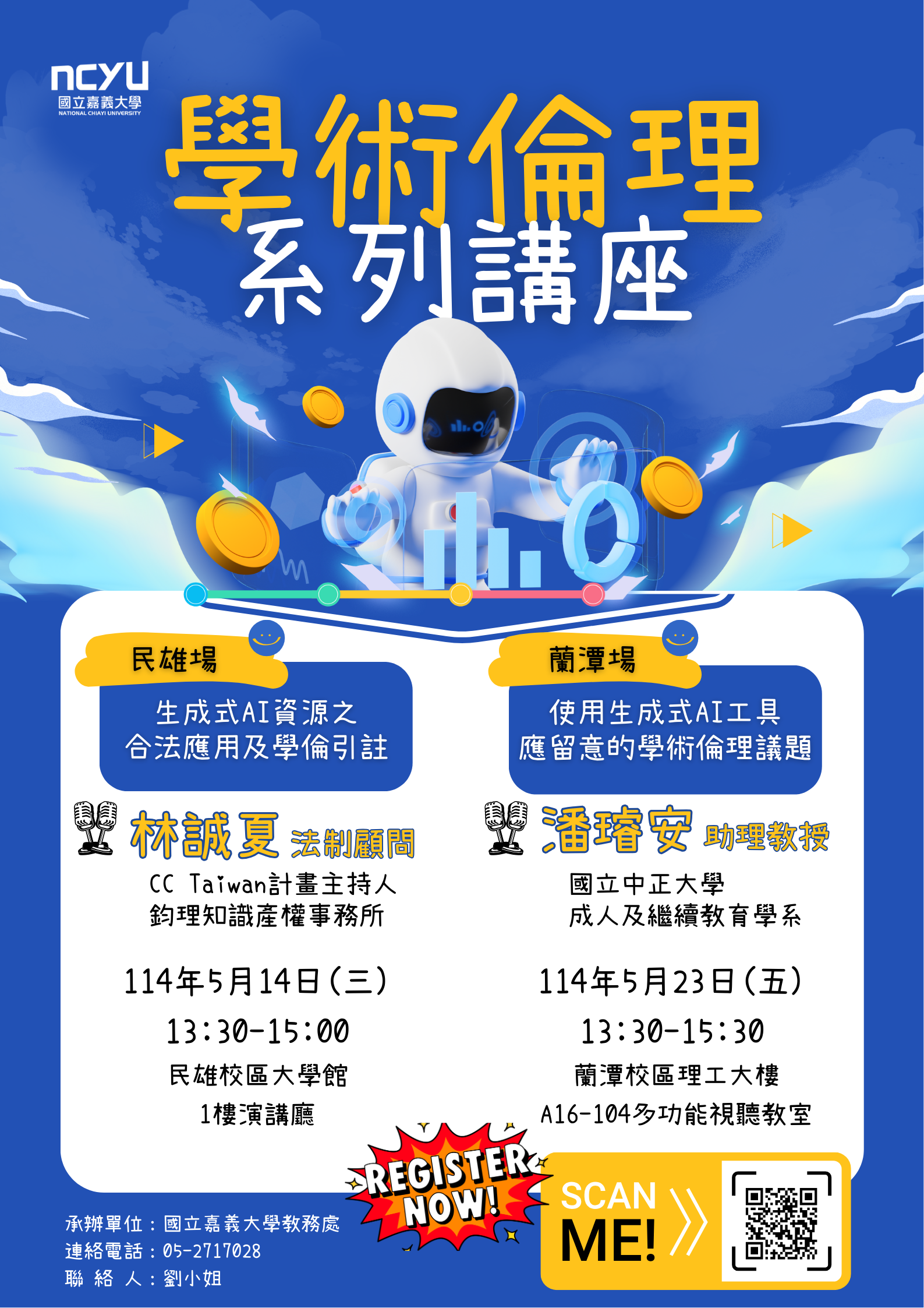 2、學術倫理專題講座報名網址:https://www.surveycake.com/s/N647y。