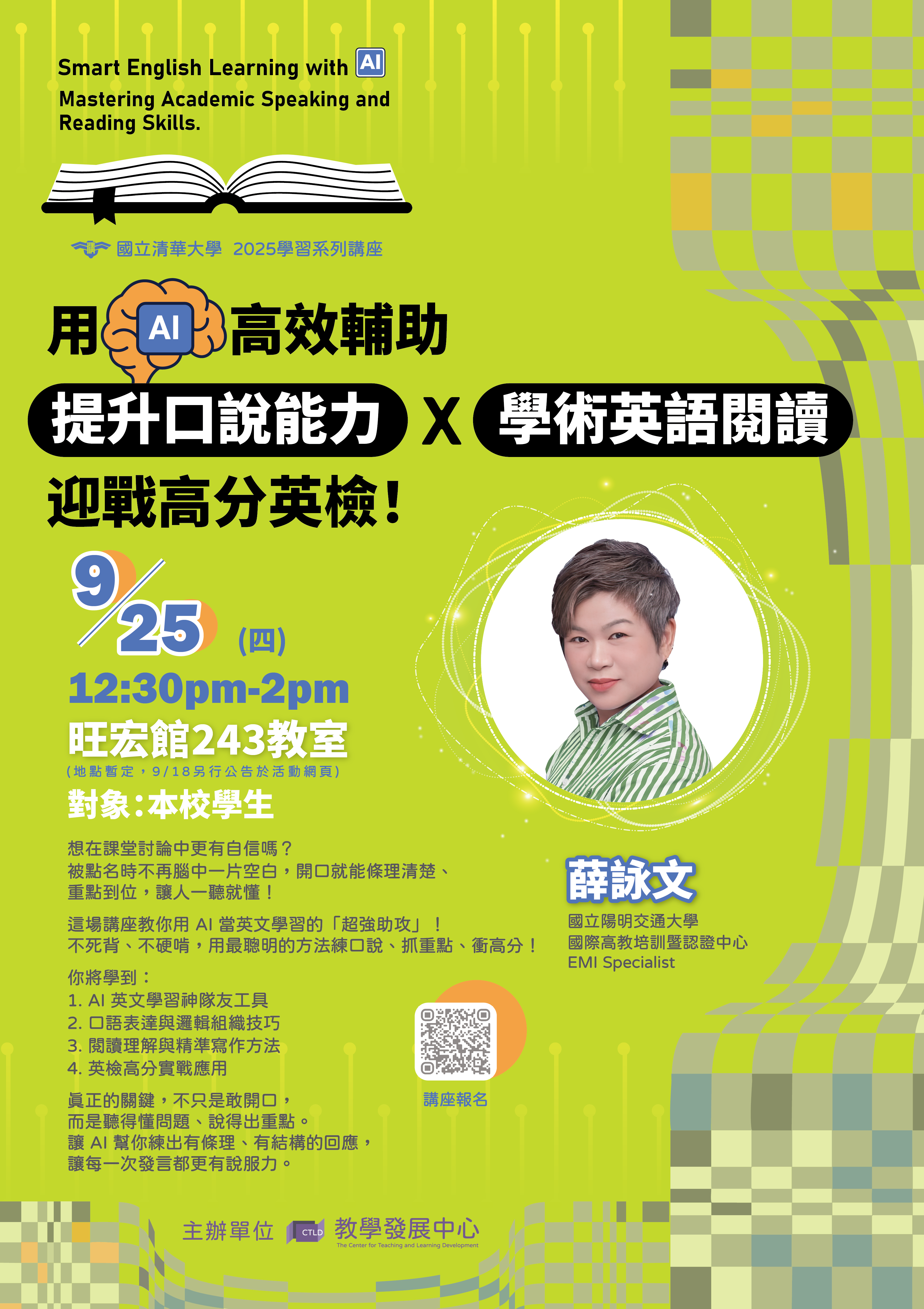 📍主題:用 AI 高效輔助:提升口說能力、學術英語閱讀、迎戰高分英檢!