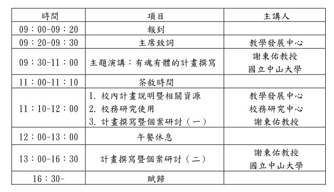 為協助教師申請及撰寫計畫,教發中心特別邀請教學實踐研究計畫經驗豐富的主講—謝東佑教授。