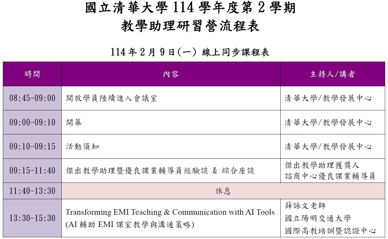 🙋♀️🙋♂️114學年度第2學期教學助理研習營-115/2/9(一)~2/10(二)(限本校學生參加)TA Workshop
